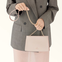The Furla Myfurla clutch delivers elegant style in miniature form. Made from print-textured leather, it stands out for its geometric trapezoid shape. The chain shoulder strap with leather sections is removable, allowing you to wear it crossbody or carry it as a sophisticated clutch. - Open inside slip pocket - Two side hooks for handle or additional straps - Magnetic closure - Arch and Furla logo punched on the front Details Interior Details: 1 Flat Open Pocket Material: Textured Leather Strap Length Max: 42.52 in Strap Length Min: 42.52 in Product Code: WE00774ARE00010070496S Internal Composition: 100% Polyester External Composition: 100% Leather Plating: Gold Dimensions in INCH 8,46 x 5,12 x 2,36 (w x h x d)