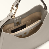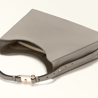 This stylish Furla Nuvola hobo bag boasts geometric lines and a delicate design. Maxi-sized, it is made from soft textured leather. The wide, spacious interior features two compartments with a magnetic fastening, and a zipped central pocket for perfect organisation of your personal items. The removable, adjustable handle is embellished with unique Arcosfera hardware, combining the iconic Furla Arch logo with the brand's original spherical hallmark. - Stud buttons on the side for adjusting the handle - Furla logo punched on the back Details Interior Details: 1 Zipped Divider 2 Compartments Flat Open Pockets Exterior Details: Furla Punched Logo/Single Handle Material: Grained Calf Leather Strap information: Removable/adjustable leather strap Closure: Magnet Closure Hardware: Furla Arch Ring Cufflinks For Regolation Product Code: WB01246HSF0001007VAN00 Plating: Gold Dimensions in INCH 15,35 x 10,63 x 3,94 (w x h x d)