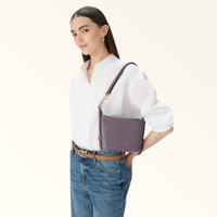 The small Furla Nuvola handbag is styled in soft leather with a natural grained finish. The rounded shape is accompanied by a top handle held together by two interlocking Arcosfera hardware accessories that combine the iconic Furla Arch logo with the brand's original spherical hallmark. Perfect as a top-handle bag, it can also be worn crossbody with a matching shoulder strap. - Open inside pocket - Six inner card slots - Zipped closure - Furla logo print on the front Details Interior Details: 6 Cc Slots/1 Flat Open Pocket Exterior Details: Furla Punched Logo/Leather Zip Puller Material: Claris Lux Calf Leather Strap information: Removable/Non Adjustable Leather Strap Product Code: WE00846BX204510072493S Plating: Gold Dimensions in INCH 8,27 x 6,69 x 2,76 (w x h x d)