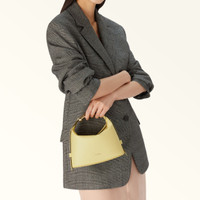The small Furla Nuvola handbag is styled in soft leather with a natural grained finish. The rounded shape is accompanied by a top handle held together by two interlocking Arcosfera hardware accessories that combine the iconic Furla Arch logo with the brand's original spherical hallmark. Perfect as a top-handle bag, it can also be worn crossbody with a matching shoulder strap. - Open inside slip pocket - Six inner card and ID slots - Zip closure - Furla logo printed on the front Details Interior Details: 6 Cc Slots/1 Flat Open Pocket Exterior Details: Furla Punched Logo/Leather Zip Puller Material: Claris Lux Calf Leather Product Code: WE00725BX204510073684S Internal Composition: 100% Polyester External Composition: 100% Leather Plating: Gold Dimensions in INCH 7,87 x 5,51 x 2,76 (w x h x d)
