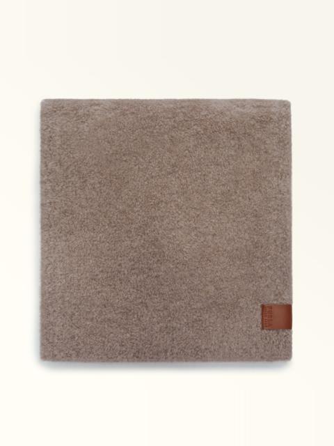Made of a soft and cosy teddy wool with a slightly curled pile, the Furla Nuvola scarf wraps your shoulders and neck in a fluffy embrace. A customised leather tag with an embossed logo on the bottom adds a unique and distinctive twist. - Size: 30 x 180 cm Details Material: Wool Product Code: WT00090LH00004401PNN00 External Composition: 90% Wool 7% Nylon 3% Elastan Plating: Basic Model Dimensions in INCH 98,43 x 11,02 (w x h)