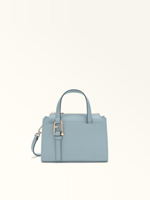 With square lines and a contemporary design, the Furla Nuvola mini Boston bag comes in an exquisite natural-feel leather. Thoughtfully constructed for optimum storage, it features small inside pockets and an open outer compartment for easy and immediate access. Its adjustable matching shoulder strap can be detached from the bag using the stud buttons on the side, allowing for multiple styling options. The Arcosfera hardware adds a unique flourish to the front handle, combining the iconic Furla Arch logo with the brand's original spherical hallmark. - Open inside pocket - Inside zip pocket - Double matching leather handles - Detachable strap with side snap hooks in the shape of the Arch logo - Top zip closure - Furla logo punched on the back Details Interior Details: 1 Flat Open Pocket/ 1 Zipped Pocket Material: Claris Lux Calf Leather Strap information: Removable/adjustable leather strap Strap Length Max: 46.26 in Strap Length Min: 41.54 in Closure: Zipper Product Code: WB01337BX204510073963S Internal Composition: 100% Polyester External Composition: 100% Leather Plating: Gold Dimensions in INCH 8,66 x 5,91 x 4,13 (w x h x d)