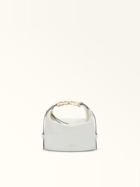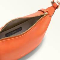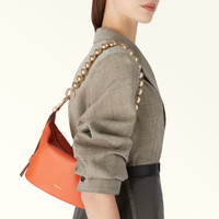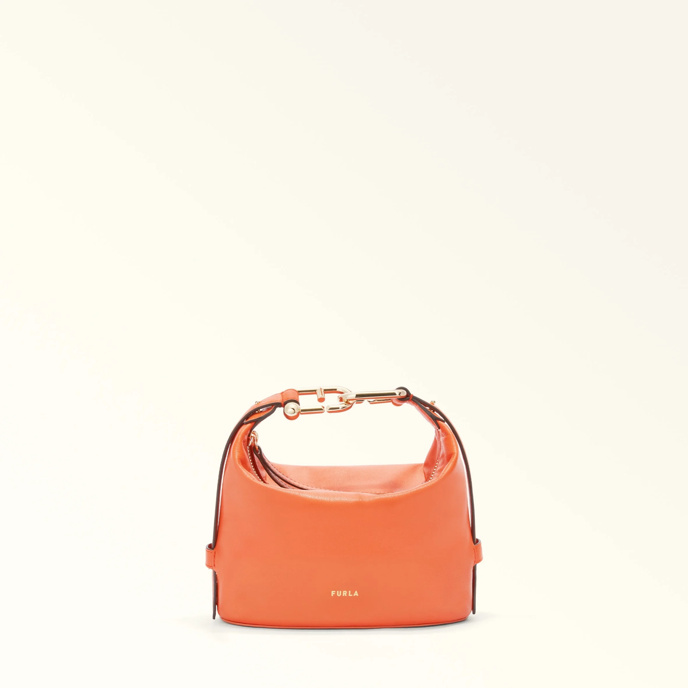 The small Furla Nuvola handbag is styled in soft leather with a natural grained finish. The rounded shape is accompanied by a top handle held together by two interlocking Arcosfera hardware accessories that combine the iconic Furla Arch logo with the brand's original spherical hallmark. Perfect as a top-handle bag, it can also be worn crossbody with a matching shoulder strap. - Open inside slip pocket - Six inner card and ID slots - Zip closure - Furla logo printed on the front Details Interior Details: 6 Cc Slots/1 Flat Open Pocket Exterior Details: Furla Punched Logo/Leather Zip Puller Material: Claris Lux Calf Leather Product Code: WE00725BX20451007KP000 Internal Composition: 100% Polyester External Composition: 100% Leather Plating: Gold Dimensions in INCH 7,87 x 5,51 x 2,76 (w x h x d)