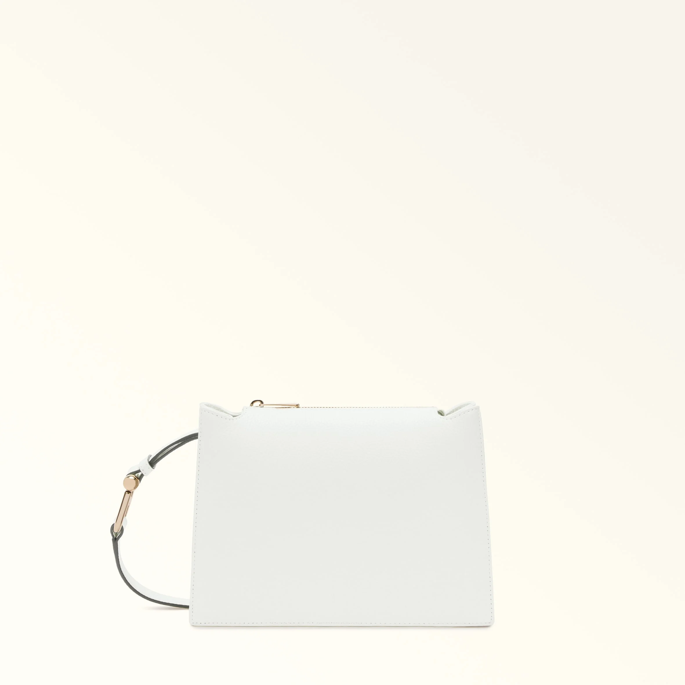 The small Furla Nuvola crossbody exudes a soft, delicate allure. Made of fine textured leather, it features a square geometric silhouette, two open inside compartments with a central divider and a top zip closure. Its detachable shoulder strap has an adjustable length, sitting comfortably on the shoulder or across the body. The Arcosfera hardware adds a unique detail to the bag, combining the iconic Furla Arch logo with the brand's original spherical hallmark. - Open inside pocket - Inside zip pocket - Stud buttons at the sides to adjust the handle - Furla logo punched on the front Details Interior Details: Divider 2 Compartments 1 Zip Pocket Flat Open Pockets Exterior Details: Furla Punched Logo Material: Grained Calf Leather Strap information: Removable/adjustable leather strap Strap Length Max: 41.73 in Strap Length Min: 39.37 in Closure: Zipper Hardware: Furla Arch Ring Cufflinks For Regolation Product Code: WB01275HSF0001007PNN00 Internal Composition: 100% Polyester External Composition: 100% Leather Plating: Gold Dimensions in INCH 9,84 x 6,89 x 3,15 (w x h x d)