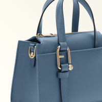 With square lines and a contemporary design, the Furla Nuvola mini Boston bag comes in an exquisite natural-feel leather. Thoughtfully constructed for optimum storage, it features small inside pockets and an open outer compartment for easy and immediate access. Its adjustable matching shoulder strap can be detached from the bag using the stud buttons on the side, allowing for multiple styling options. The Arcosfera hardware adds a unique flourish to the front handle, combining the iconic Furla Arch logo with the brand's original spherical hallmark. - Open inside pocket - Inside zip pocket - Double matching leather handles - Detachable strap with side snap hooks in the shape of the Arch logo - Top zip closure - Furla logo punched on the back Details Interior Details: 1 Flat Open Pocket/ 1 Zipped Pocket Material: Claris Lux Calf Leather Strap information: Removable/adjustable leather strap Strap Length Max: 46.26 in Strap Length Min: 41.54 in Closure: Zipper Product Code: WB01337BX20451007GU000 Internal Composition: 100% Polyester External Composition: 100% Leather Plating: Gold Dimensions in INCH 8,66 x 5,91 x 4,13 (w x h x d)