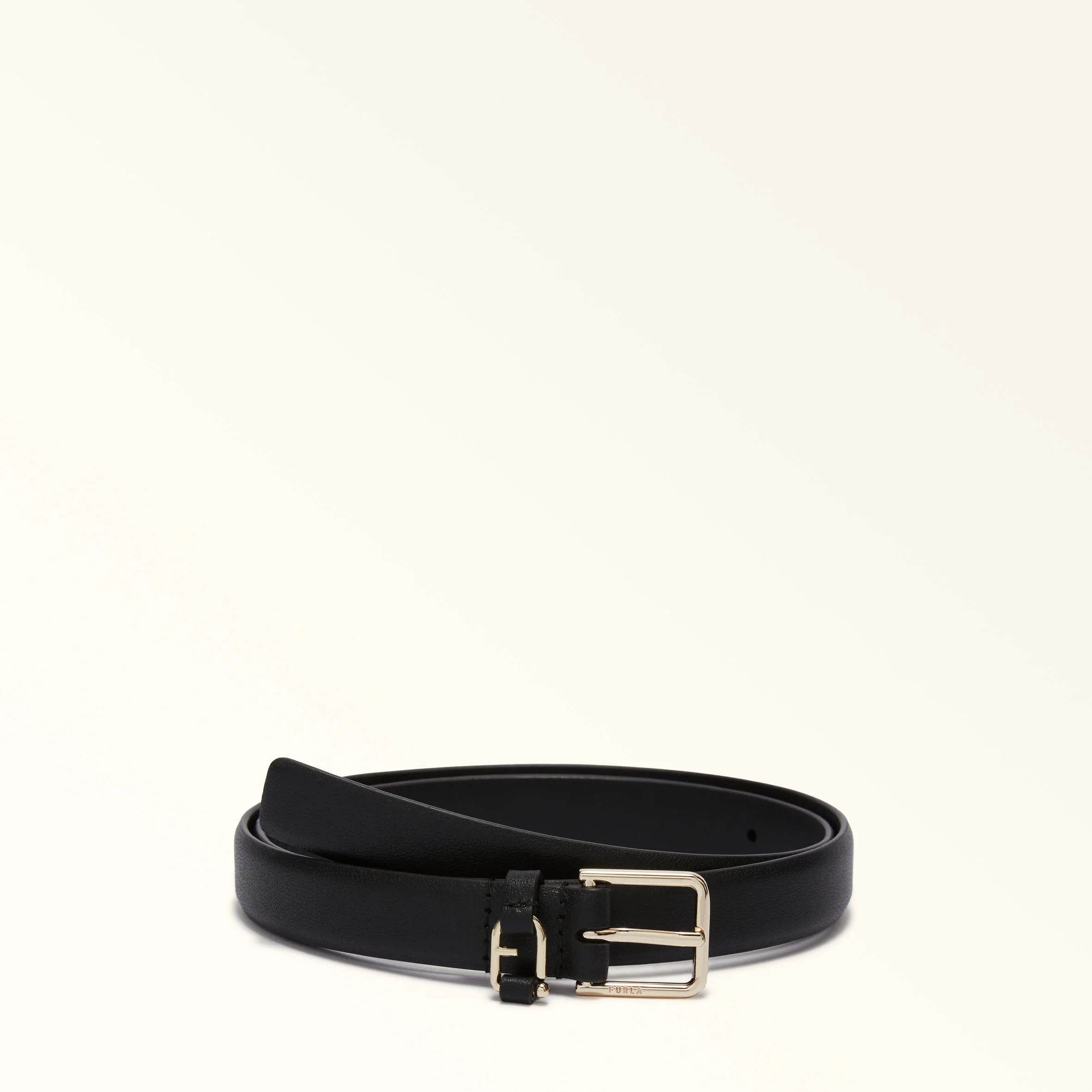 Slim and sophisticated, the Furla Nuvola belt is the perfect finishing touch for any look. Made of soft leather with a natural grained finish, it is decorated with a Furla-engraved buckle. A mini Arcosfera logo on the first loop lends the accessory a striking twist. - Width: 2 cm Details Material: Claris Lux Calf Leather Belt Type: Fixed Belt Product Code: WC00099BX20451007O6000 External Composition: 90% Leather 9% Metal 1% Brass Plating: Gold