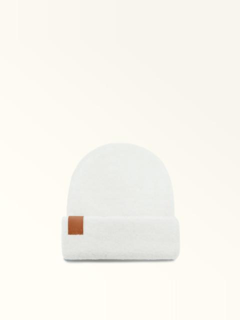 The Furla Nuvola beanie is soft, warm and snug. Made of a plain plush teddy wool fabric, it's a must-have addition for your winter wardrobe. It makes the perfect standalone accessory or goes with our Furla Nuvola scarf. The leather tag on the front, embossed with logo lettering, adds a finishing touch. Details Material: Wool Product Code: WH00059LH00004401MA200 External Composition: 90% Wool 7% Nylon 3% Elastan Plating: Basic Model