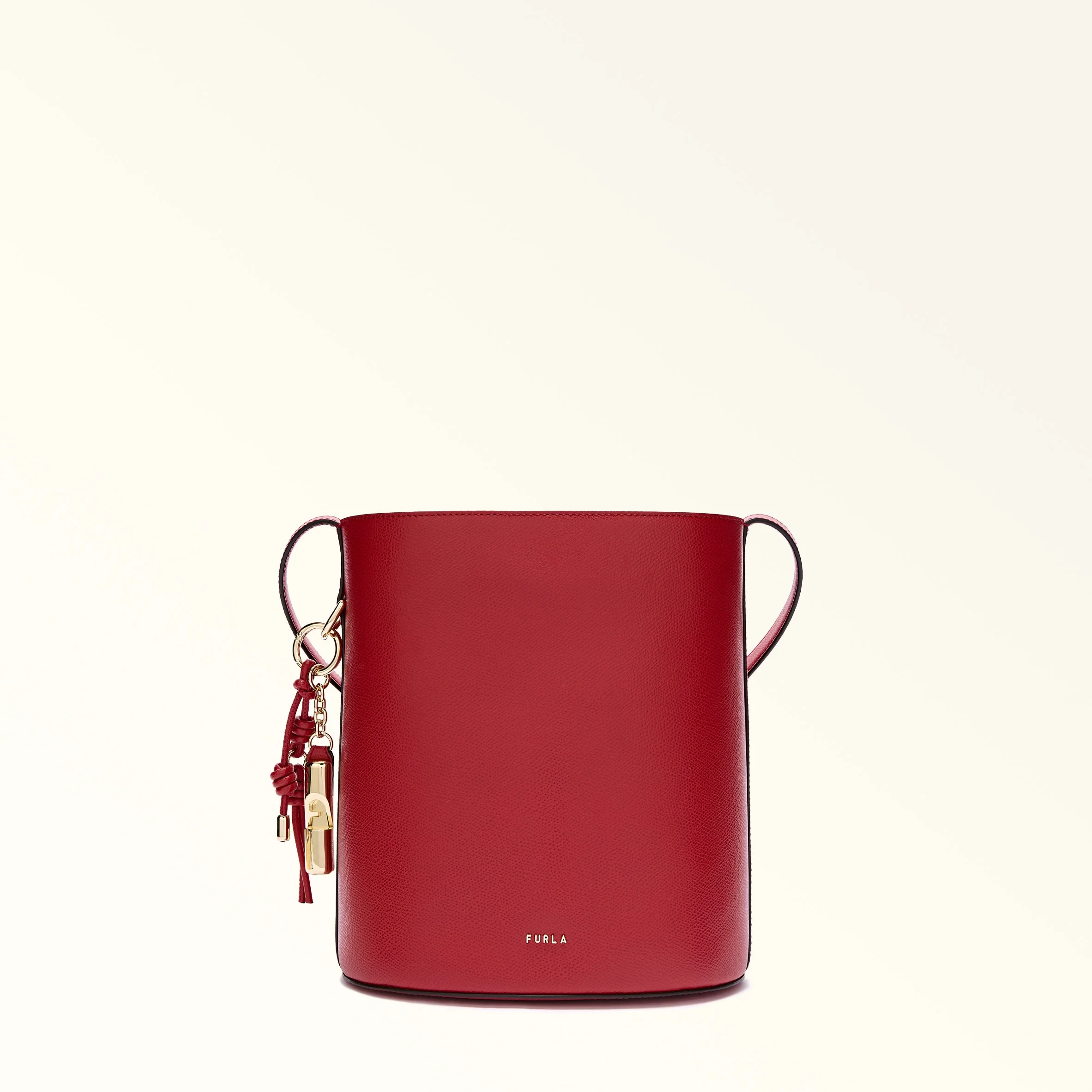 Furla Roxie is a small, compact bucket bag for keeping your essentials close. Featuring a soft and flexible base, its structured design is elevated by precious leather with a printed finish. This accessory sits comfortably in the hand, but can also be worn across the body using its fixed adjustable strap with stud buttons. A detachable cylindrical charm with two braided cords adds a distinctive touch. - Open inside pocket - Magnetic closure - Furla logo print on the front Details Material: Textured Leather Strap Length Max: 38.19 in Strap Length Min: 38.19 in Closure: Magnet Closure Product Code: WB01875ARE00010074484S Plating: Gold Dimensions in INCH 9,25 x 9,84 x 6,5 (w x h x d)