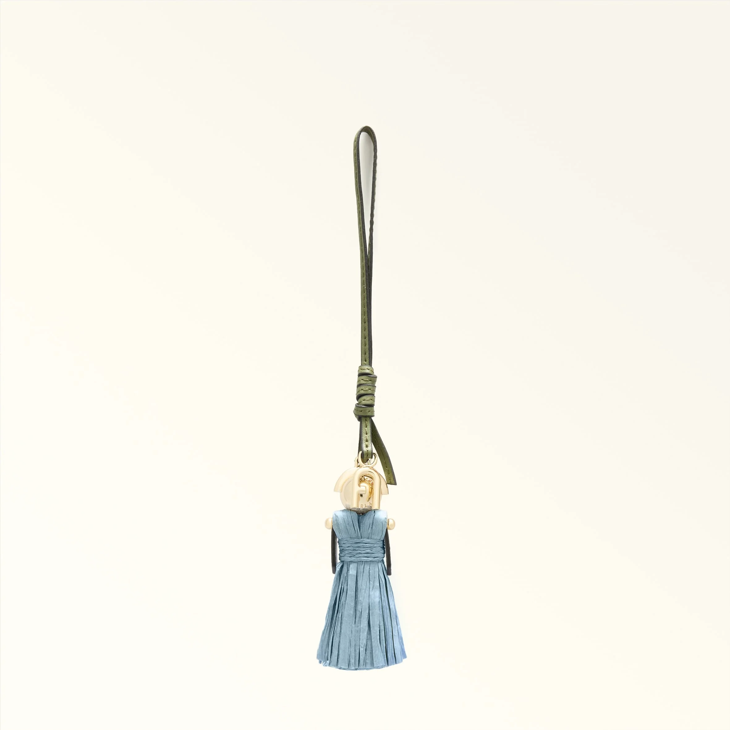 The girl-shaped Furla Sfera charm is the perfect embellishment for your bags and accessories. Made of paper straw with metal and leather details, it adds a unique twist to any look. - Leather strap - Sfera logo-shaped elements - Metal Arch logo Details Exterior Details: Furla Logo Engraved On The Metal Material: Paper Straw + Metal Product Code: WK00560BX443410074500S Plating: Gold Dimensions in INCH 1,97 x 9,06 (w x h)