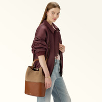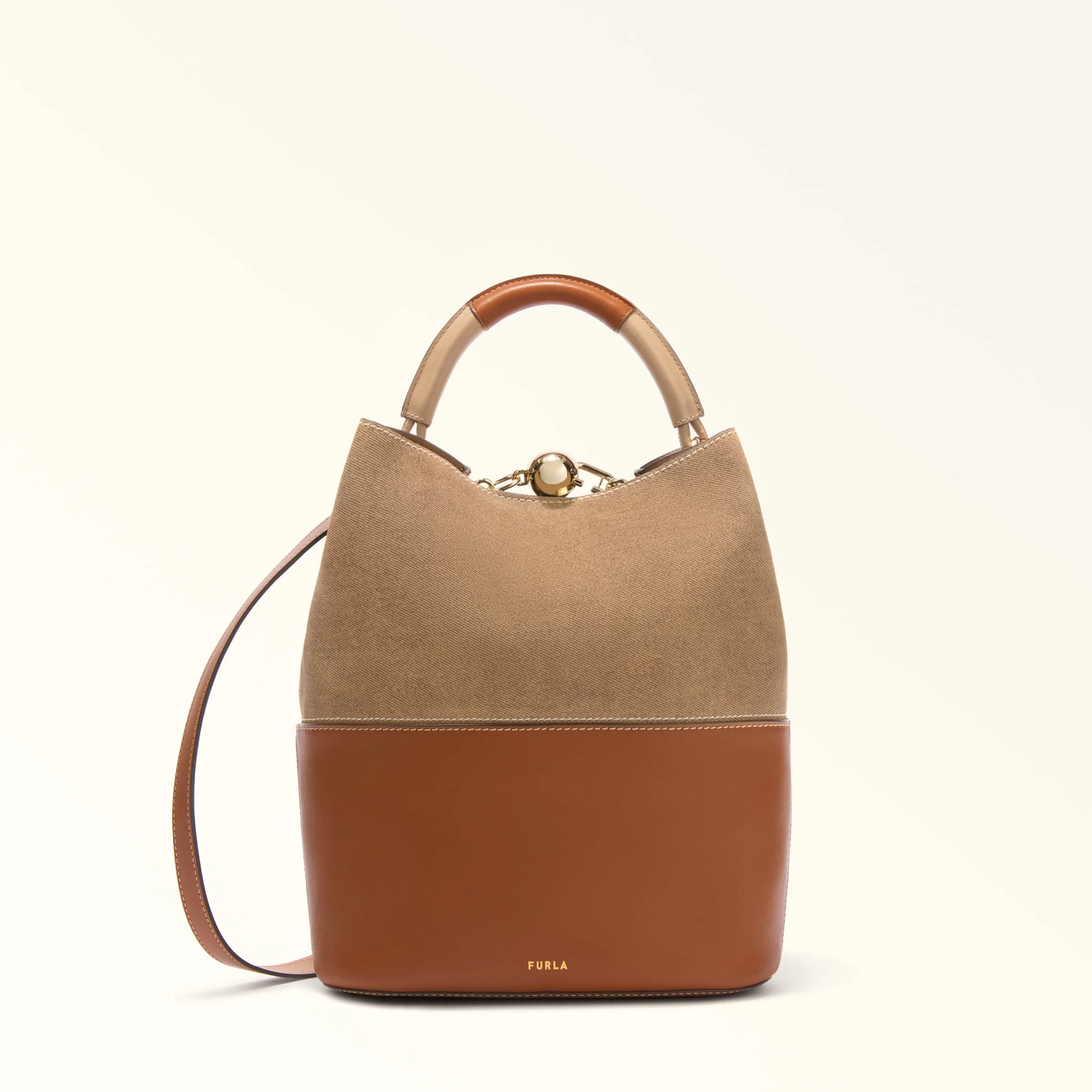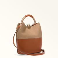 The perfect everyday bucket bag, Furla Sfera is compact yet spacious. Its sturdy, smooth leather base creates a visual and material contrast with the top, made of a soft suede denim-finish fabric. Light to carry and fully lined, it also features iconic Sfera hardware, embellishing the handle with a distinctive twist. - Adjustable, detachable strap in matching leather - Magnetic closure - Furla logo print on the front Details Material: Colorblock Napoli Double Calf Leather + Roma Soft Calf Leather Colorblock Strap information: Removable/adjustable leather strap Strap Length Max: 41.34 in Strap Length Min: 36.81 in Closure: Magnet Closure Product Code: WB01679BX392410074085S Internal Composition: 80% Leather 10% Nylon 10% Polyurethane External Composition: 100% Leather Plating: Gold Dimensions in INCH 10,24 x 12,8 x 4,72 (w x h x d)