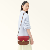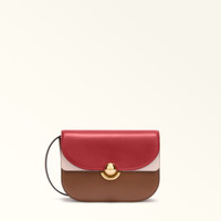 The sleek lines and saddle silhouette of this bag make it elegant and distinctive. The small Furla Sfera piece has a matching adjustable shoulder strap and can be comfortably worn crossbody or on the shoulder. Styled in soft colour-block Roma calfskin, it is finished with the clean and simple new round Sfera closure, the iconic signature of the Furla brand. - Open inside pocket - Inside zip pocket - Open inside pocket on front panel - Flap closure Details Material: Roma Soft Calf Leather Colorblock Strap information: Removable/adjustable leather strap Strap Length Max: 47.24 in Strap Length Min: 39.76 in Product Code: WB01355BX018410024028S Internal Composition: 40% Nylon 40% Polyurethane 10% Polyester 10% Leather External Composition: 100% Leather Plating: Polished Bronze Dimensions in INCH 9,45 x 5,91 x 2,95 (w x h x d)