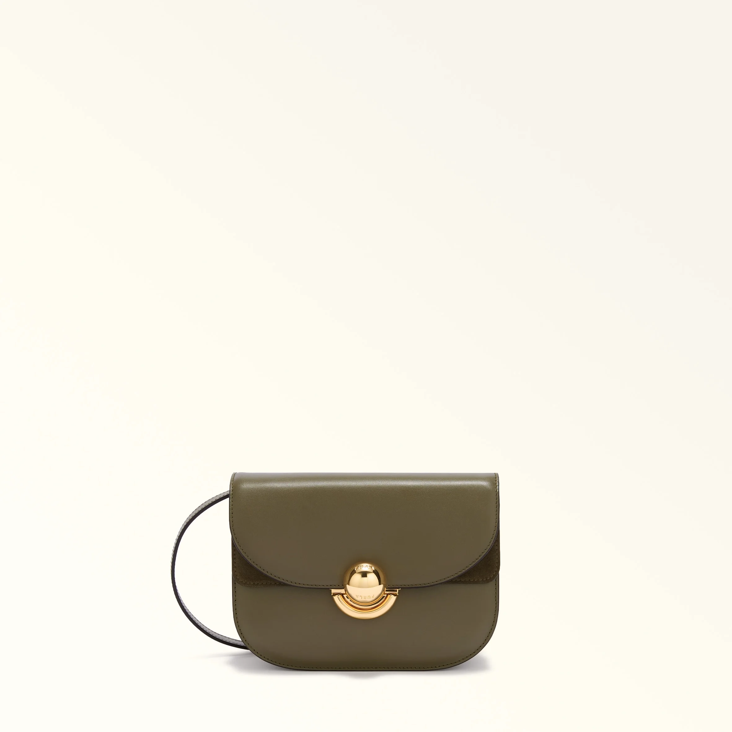 Crafted from luxurious smooth leather and finished with soft suede details on the inner flap, this Furla Sfera Crossbody features soft, sweeping lines. The front flap is embellished with the Sfera closure, an iconic signature of the Furla brand. With an adjustable matching strap, it sits comfortably on the shoulder. - Open inside pocket on the front panel - Inside zip pocket Details Material: Soft Calf Leather + Suede Strap information: Removable/adjustable leather strap Strap Length Max: 46.85 in Strap Length Min: 40.16 in Product Code: WB01737BX042810022810S Internal Composition: 40% Nylon 40% Polyurethane 10% Polyester 10% Leather External Composition: 100% Leather Plating: Polished Bronze Weight: 0.6 kg Dimensions in INCH 6,3 x 5,12 x 2,56 (w x h x d)