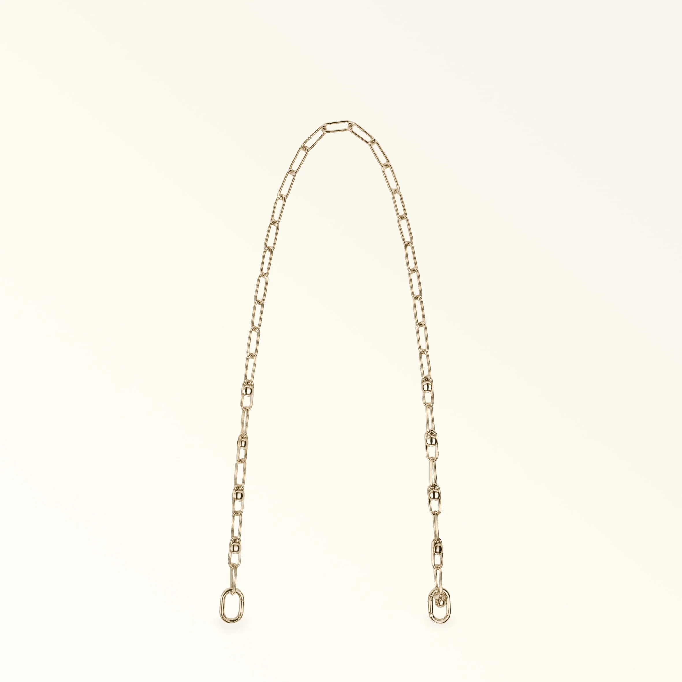 The metal Furla Sfera strap is designed to hook onto the brand's bags and accessories. Its chain is embellished with round details recalling the iconic Sfera logo, whilst its practical snap hooks mean you can attach and remove the strap with ease. Details Exterior Details: Furla Logo Material: Metal Strap Length Max: 37.8 in Strap Length Min: 37.8 in Product Code: WK00467MT00001007CGD00 Plating: Gold