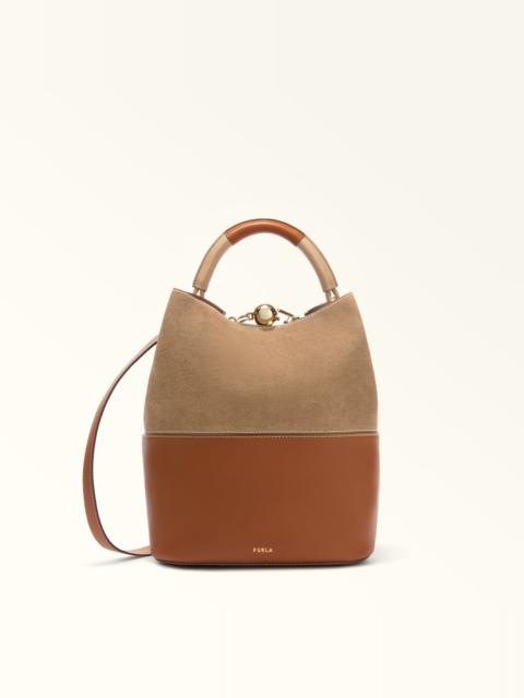 The perfect everyday bucket bag, Furla Sfera is compact yet spacious. Its sturdy, smooth leather base creates a visual and material contrast with the top, made of a soft suede denim-finish fabric. Light to carry and fully lined, it also features iconic Sfera hardware, embellishing the handle with a distinctive twist. - Adjustable, detachable strap in matching leather - Magnetic closure - Furla logo print on the front Details Material: Colorblock Napoli Double Calf Leather + Roma Soft Calf Leather Colorblock Strap information: Removable/adjustable leather strap Strap Length Max: 41.34 in Strap Length Min: 36.81 in Closure: Magnet Closure Product Code: WB01679BX392410074293S Internal Composition: 80% Leather 10% Nylon 10% Polyurethane External Composition: 100% Leather Plating: Gold Dimensions in INCH 10,24 x 12,8 x 4,72 (w x h x d)