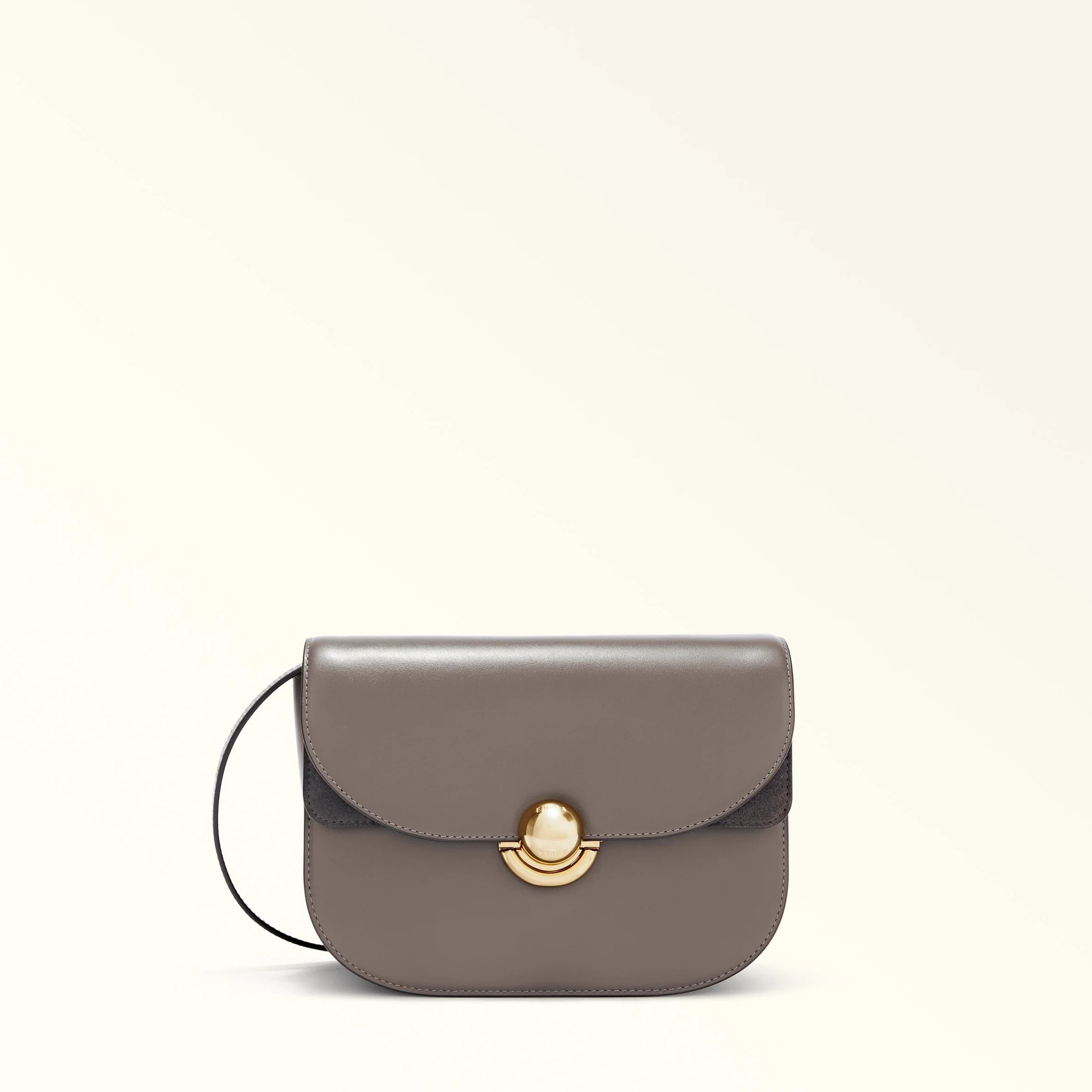 The sleek lines and saddle silhouette of this bag make it elegant and distinctive. The small Furla Sfera piece has a matching adjustable shoulder strap and can be comfortably worn crossbody or on the shoulder. Styled in luxurious smooth leather, it is finished with soft suede details on the inner flap, and the clean and simple new round Sfera closure, the iconic signature of the Furla brand. - Open inside pocket - Inside zip pocket - Open inside pocket on front panel - Flap closure Details Exterior Details: Furla Logo/Single Handle Material: Soft Calf Leather + Suede Strap information: Removable/adjustable leather strap Strap Length Max: 47.24 in Strap Length Min: 39.76 in Closure: Boule Lock Product Code: WB01355BX042810024283S Internal Composition: 40% Nylon 40% Polyurethane 20% Polyester External Composition: 100% Leather Plating: Polished Bronze Dimensions in INCH 9,45 x 5,91 x 2,95 (w x h x d)