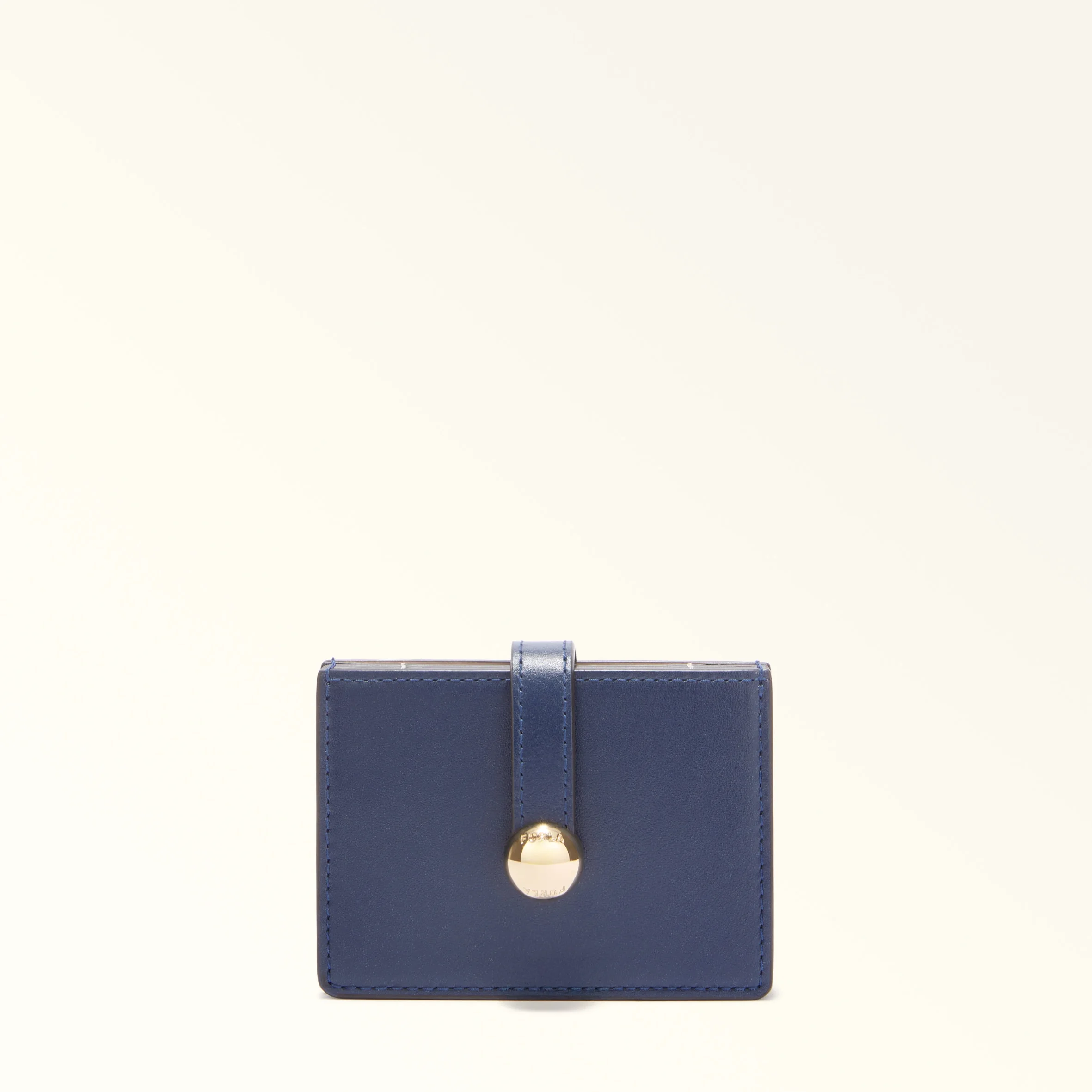 The Furla Sfera card holder offers pocket-sized versatility. Its soft leather design features a tab and press stud, embellished with the iconic Sfera logo. Complete with a practical gusseted interior, it makes the perfect accessory for slipping into your bag and staying organised. - Five inner credit card slots Details Material: Soft Calf Leather Product Code: WP00549AX073310074550S Internal Composition: 100% Ovis Aries Leather External Composition: 100% Leather Plating: Gold Dimensions in INCH 4,33 x 3,15 x 0,79 (w x h x d)