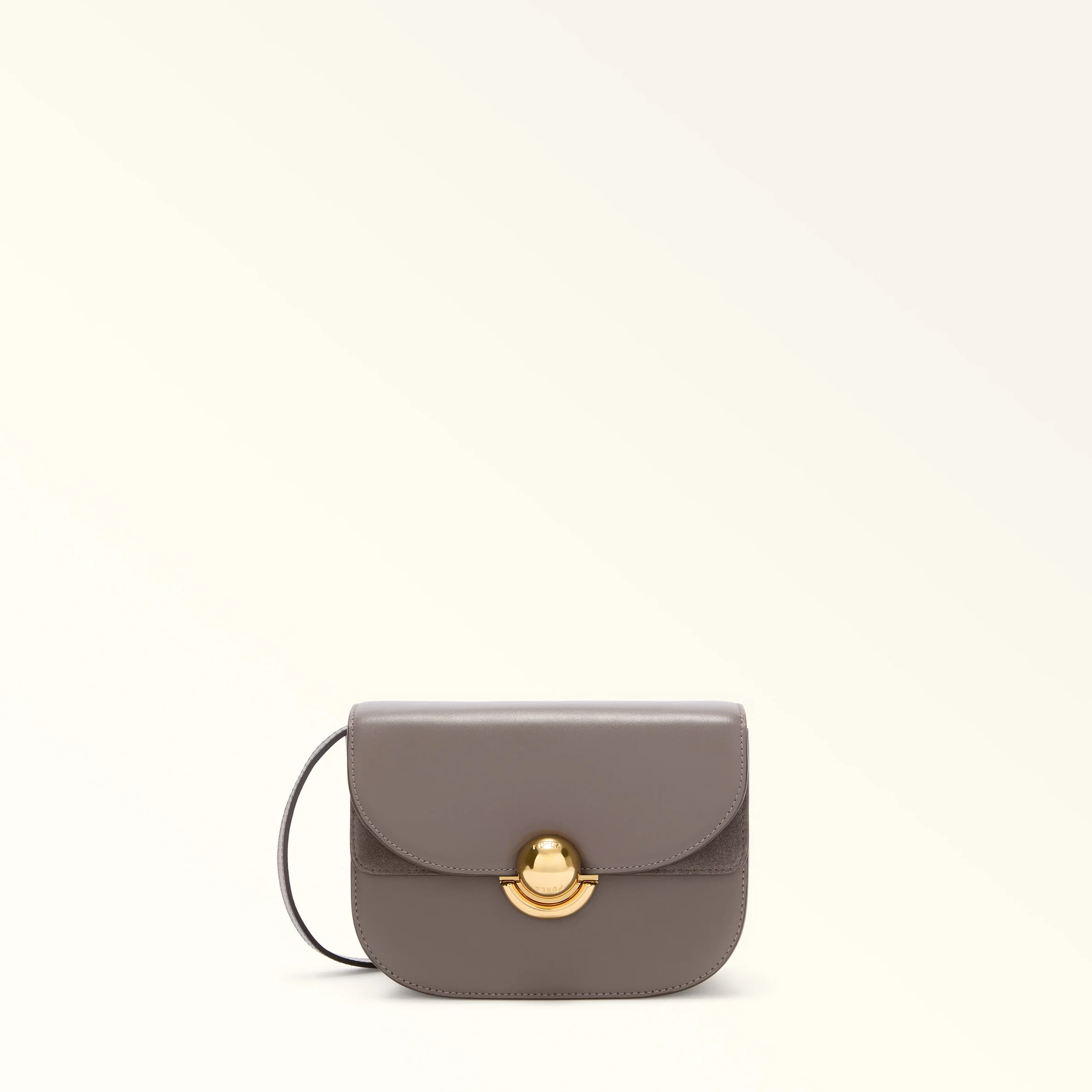 Crafted from luxurious smooth leather and finished with soft suede details on the inner flap, this Furla Sfera Crossbody features soft, sweeping lines. The front flap is embellished with the Sfera closure, an iconic signature of the Furla brand. With an adjustable matching strap, it sits comfortably on the shoulder. - Open inside pocket on the front panel - Inside zip pocket Details Material: Soft Calf Leather + Suede Strap information: Removable/adjustable leather strap Strap Length Max: 46.85 in Strap Length Min: 40.16 in Product Code: WB01737BX042810024283S Internal Composition: 40% Nylon 40% Polyurethane 10% Polyester 10% Leather External Composition: 100% Leather Plating: Polished Bronze Dimensions in INCH 6,3 x 5,12 x 2,56 (w x h x d)