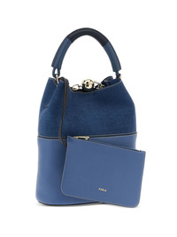 small Sfera bucket bag Highlights - Light blue - Smooth leather base - Denim-effect suede top - Contrast stitching detail - Fixed top handle - Magnetic closure Imported Composition Outer: Calf Leather 100%, Calf Suede 100% Lining: Leather 100% SIZE & FIT Measurement DEPTH 4.72 in(12 cm) HEIGHT 10.03 in(25.5 cm) WIDTH 9.05 in(23 cm)