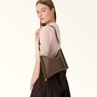 With mini dimensions made for off-duty plans, the Furla Sfera Soft shoulder bag is both elegant and practical. Made of supple nappa leather, it is embellished with suede fringing along the sides and features a detachable adjustable handle for carrying it in your hand as well as on your shoulder. Its shiny elements and Sfera hardware add a radiant finishing touch. - Open inside pocket - Zip fastening - Furla logo print on the front Details Interior Details: 1 Flat Open Pocket Exterior Details: Furla Punched Logo Material: Nappa Leather + Suede Fringes Strap information: Removable/adjustable leather strap Strap Length Max: 39.37 in Strap Length Min: 39.37 in Product Code: WE00836BX433210024286S Plating: Polished Bronze Dimensions in INCH 9,65 x 7,28 x 0,79 (w x h x d)