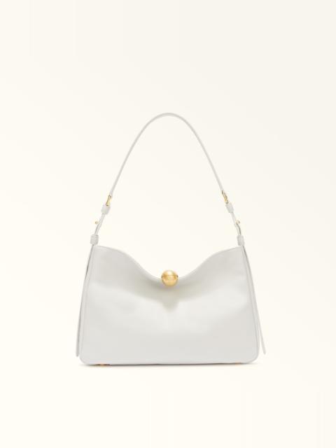 A contemporary piece boasting soft lines and a destructured shape, this Furla Sfera Soft bag has an adjustable handle and compact volume, making it ideal for wearing on the shoulder. Styled in soft padded nappa leather, the bag elegantly fastens with a magnetic closure which creates a natural draping effect, and is embellished with round Sfera hardware. - Open inside pocket - Inside zip pocket - Metal feet Details Exterior Details: Furla Punched Logo Material: Verona Calf Leather Strap Length Max: 31.5 in Strap Length Min: 31.5 in Hardware: Metal Feet Product Code: WB01403BX31681002GU000 Internal Composition: 100% Polyester External Composition: 100% Leather Plating: Polished Bronze Dimensions in INCH 11,81 x 7,87 x 2,56 (w x h x d)