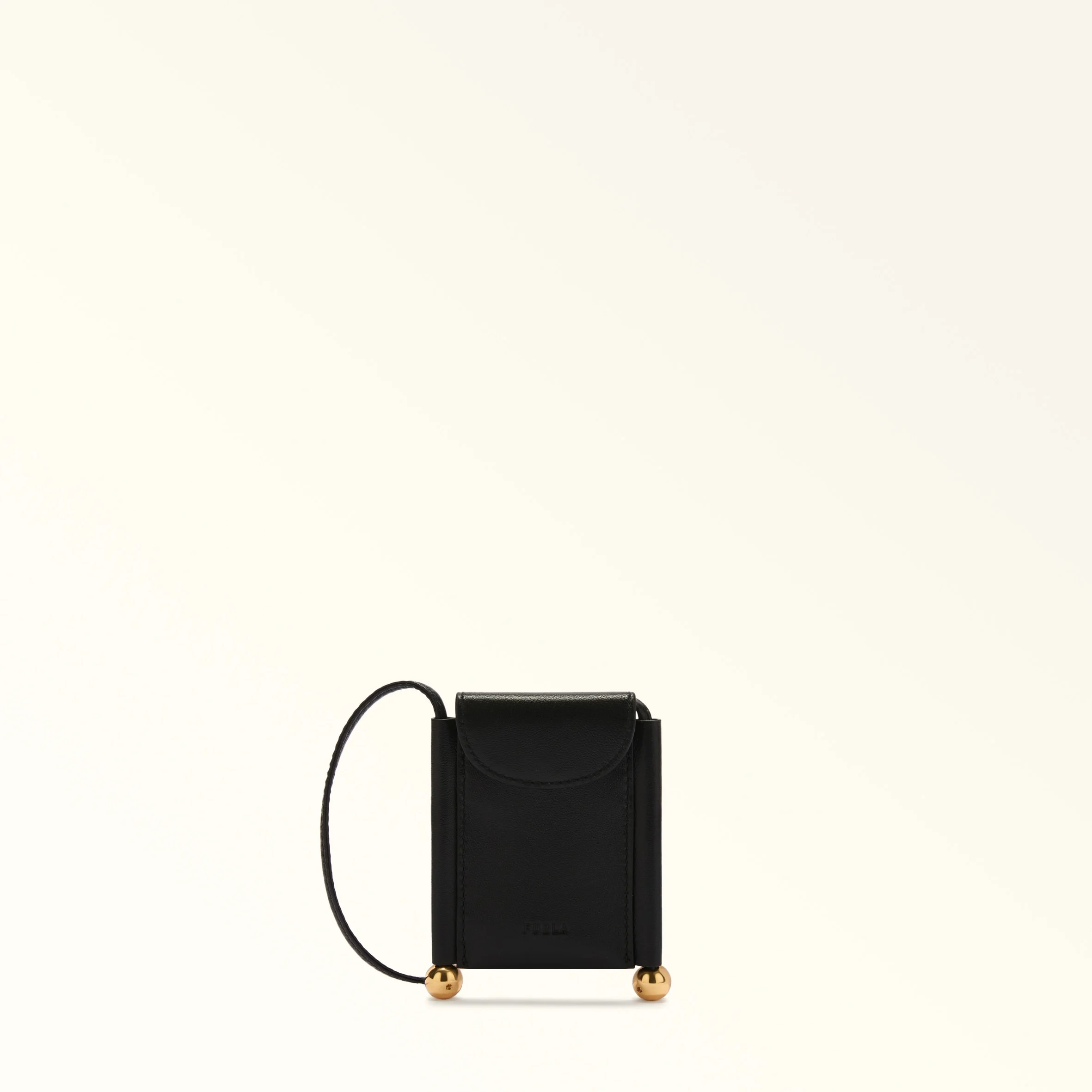 The Furla Sfera Soft card holder is made of a supple and elegant smooth leather. Practical and compact, it features numerous card slots and a fixed matching strap, embellished with iconic Sfera elements, for wearing it conveniently around your neck. - Open card slot on the front - Open compartment on the back with clear window - Magnetic button closure - Furla logo embossed on the front Details Material: Nappa Leather Strap information: Fixed/Non Adjustable Leather Strap Product Code: WP00574BX22691002O6000 Internal Composition: 65% Ovis Aries Leather Plating: Polished Bronze Dimensions in INCH 2,76 x 4,33 x 0,2 (w x h x d)