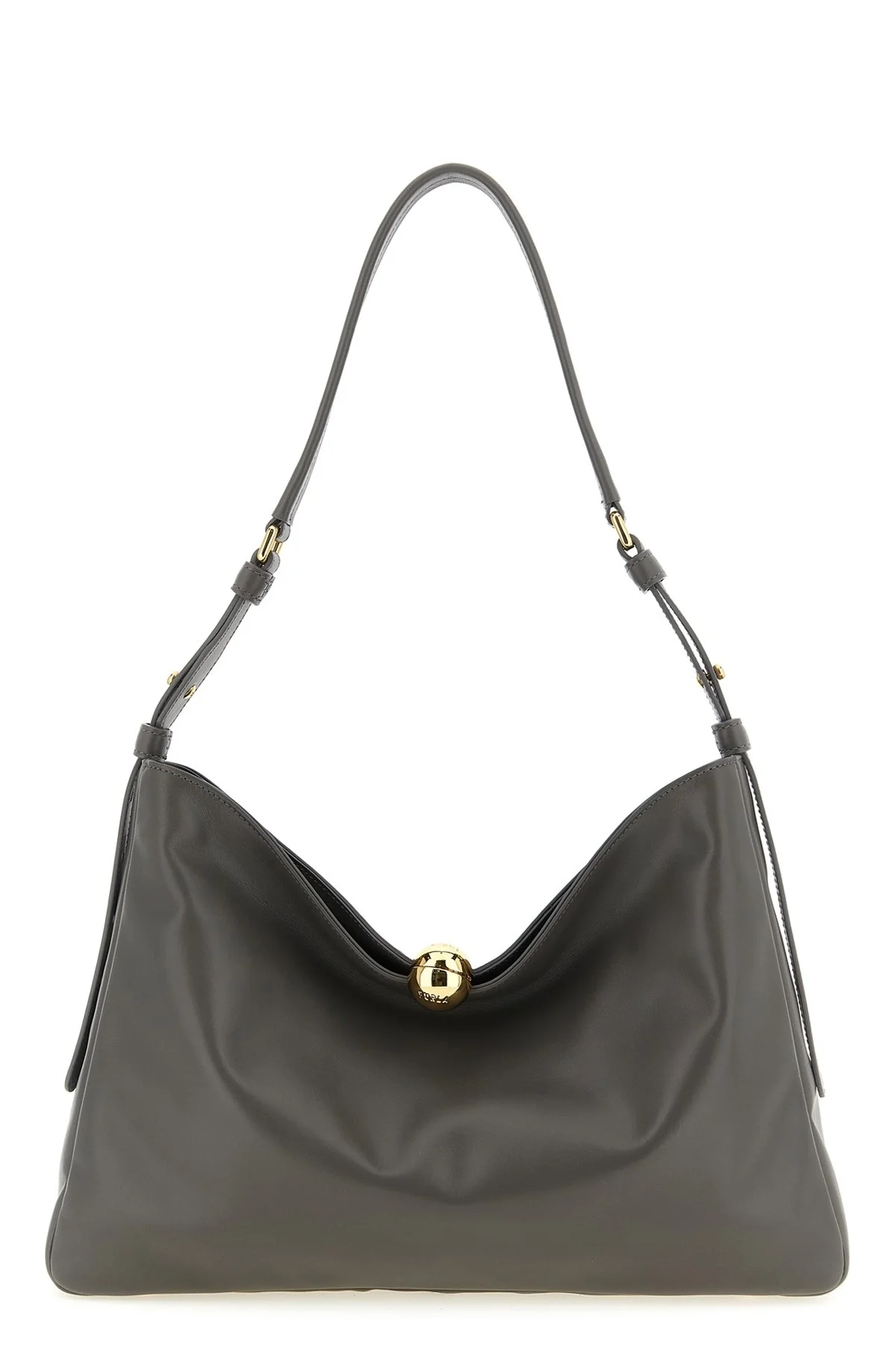 cod. WB01365BX31684283S Large 'Furla Sfera Soft' shoulder bag in padded smooth nappa leather, magnet button closure decorated with ball hardware, front embossed logo, adjustable handle, rigid base with metal feet. Color: Gray Size & Fit: W 37 x H 25 x D 8 cm Composition: 100% calfskin leather (Bos Taurus) Made in: Italy