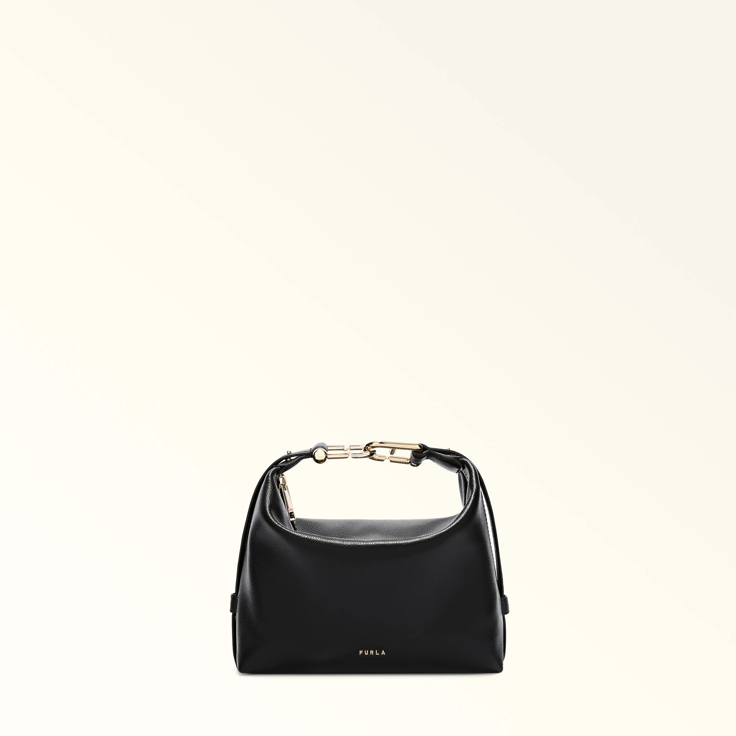 The small Furla Tonie hobo bag is made from fine, textured leather. Featuring two straps of different lengths, it can be worn on the shoulder or across the body. Its handle can also be removed and replaced with two Arch-shaped elements, creating a new and unique top-handle design. - Six inner card slots - Open inside pocket - Zip fastening Details Interior Details: 6 Cc Slots/1 Flat Open Pocket Material: Ares Soft Textured Leather Strap Length Max: 45.28 in Strap Length Min: 40.94 in Product Code: WE00877AX00231007O6000 Plating: Gold Dimensions in INCH 8,66 x 7,09 x 3,15 (w x h x d)