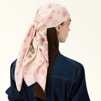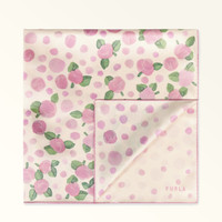 Perfect to wrap around your neck or shoulders for a touch of modern sophistication, Furla Tortona is a square scarf made from soft, smooth silk twill. The small rose print is enhanced by an original gradient-effect polka-dot pattern. - Size: 90 x 90 cm Details Material: Rose Pois Print Silk Twill Product Code: WT00021BX385444010496S External Composition: 100% Silk Plating: Basic Model Dimensions in INCH 35,43 x 35,43 (w x h)