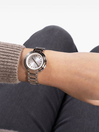 Icon Two Tone 34mm Highlights - Silver-tone dial - Ound case - 34mm case size - Logo-lettering dial - Smooth bezel - Quartz movement - Steel crown - This item comes with a standard one-year warranty from the boutique. Imported SIZE & FIT Measurement DIAMETER 1.33 in(3.4 cm)
