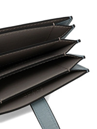 leather cardholder Highlights - Light blue - Calf leather - Multiple card-slots - Snap-button fastening Imported Composition Lining: Polyurethane 80%, Polyester 20% Outer: Calf Leather 100% SIZE & FIT Measurement LENGTH 4.33 in(11 cm) WIDTH 3.14 in(8 cm)