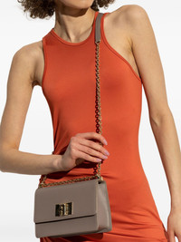 leather crossbody bag Highlights - Grey - Foldover top - Clasp fastening - Leather and chain-link shoulder strap Imported Composition Outer: Calf Leather 100% Lining: Calf Leather 100% SIZE & FIT Measurement DEPTH 2.75 in(7 cm) HEIGHT 5.11 in(13 cm) WIDTH 7.48 in(19 cm)