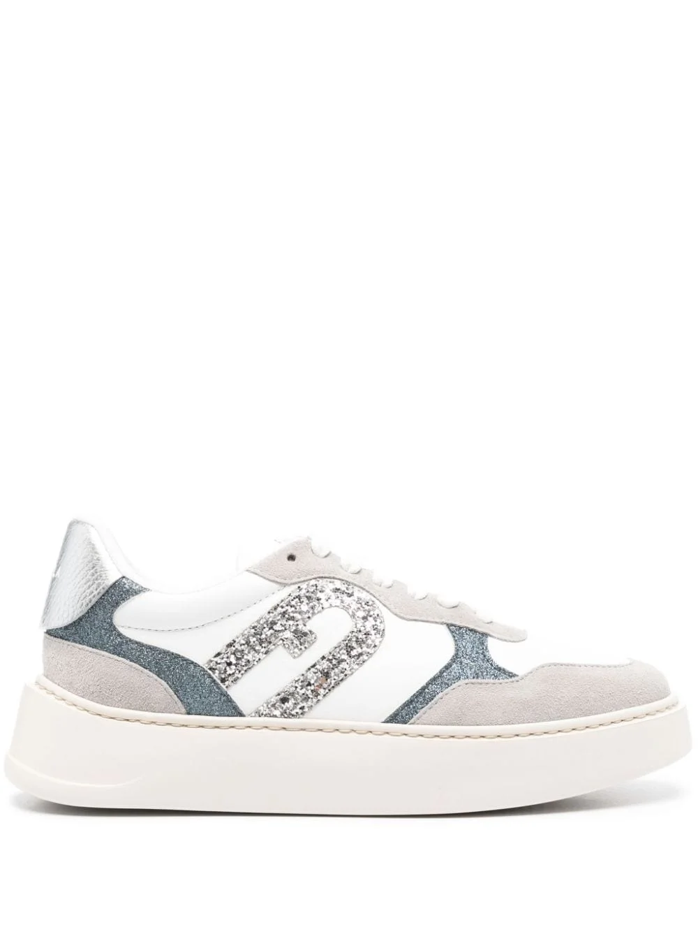 Sport leather sneakers Highlights - White/grey - Leather - Suede trim - Round toe - Logo-print tongue - Sequin logo detail - Contrasting branded heel counter - Branded insole - Mesh lining - Flat rubber sole - Front lace-up fastening Imported Composition Leather 100% SIZE & FIT Measurement HEEL 1.57 in(4 cm) Sole height 1.37 in(3.5 cm)