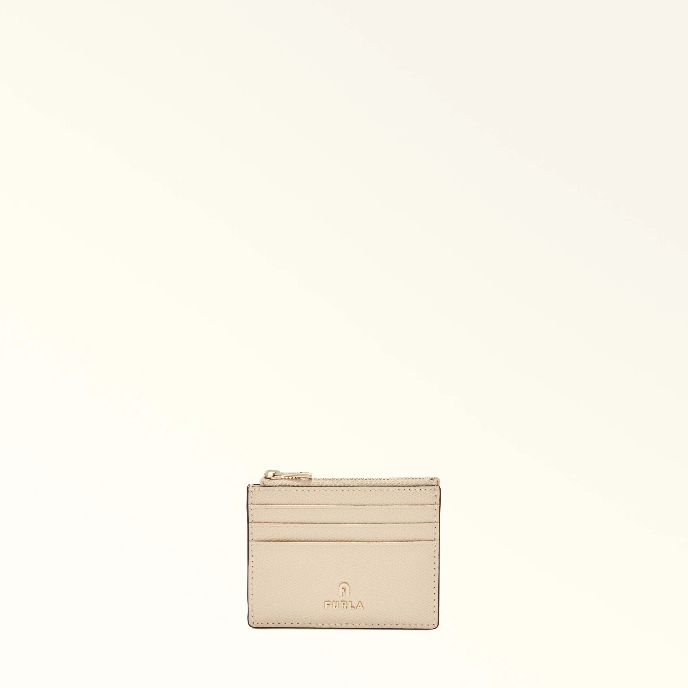 Keep your cards within easy reach with this stylish Furla Camelia card holder in printed textured leather. This compact design is ideal for keeping in any bag, and can also be used to hold cash, coins and receipts in the main compartment. - Three credit card slots on the front and back - Mini Furla and Arch logo punched on the front Details Exterior Details: 3 Cc Slots On Front Panel/3 Cc Slots On Back Panel Material: Textured Leather Closure: Zipper Hardware: Arch+Furla Lettering / Metal Zip Puller Product Code: WP00388ARE0001007B4L00 Internal Composition: 100% Viscose External Composition: 100% Leather Plating: Gold Dimensions in INCH 4,13 x 3,35 x 0,39 (w x h x d)