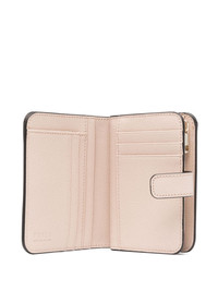 logo-lettering leather wallet Highlights - Almond beige - Calf leather - Grained texture - Gold-tone logo lettering - Folded design - Internal zip-fastening pocket - Internal card slots - Internal note compartments Imported Composition Outer: Calf Leather 100% SIZE & FIT Measurement DEPTH 1.18 in(3 cm) LENGTH 4.72 in(12 cm) WIDTH 3.54 in(9 cm)