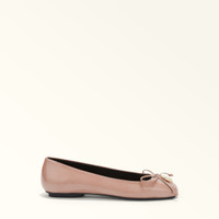 The timeless Furla Ballet flats feature a rounded toe, embellished with a bow and shiny galvanised hardware in the iconic shape of two interlocking Arch logos. Their precious patent naplack adds a glossy, elegant finish whilst their soft and flexible rubber sole offers comfort and convenience with each step. - Low 5 cm heel - Furla logo on the insole Details Interior Details: Synthetic lining Exterior Details: Furla Logo Hardware Material: Naplack Patent Leather Heel Height: 0.2 in Sole Material: Rubber Heel Typology: Flat Shoe tip: ROUND Product Code: YJ00BALW3600010073378S Internal Composition: 72% Nylon 20% Ovis Aries Leather 8% Polyurethane External Composition: 100% Leather Plating: Gold