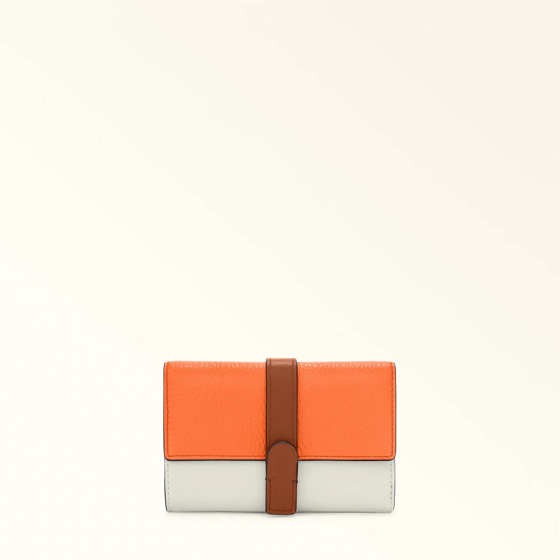 A compact, functional wallet that you can store in any bag. Furla Grazia stands out for its mixture of materials: smooth leather and contrasting grained details for a colour-block effect. The tri-fold design opens up like a book and features a spacious inner coin pocket with zip. - Fifteen inner credit card and ID slots - Inner compartment for banknotes - Flap and press-stud closure - Furla logo embossed on the front Details Material: Roma Soft Calf Leather Colorblock + Grained Calf Leather Hardware: Metal Zip Puller Product Code: WP00498BX158810074056S Internal Composition: 100% Viscose External Composition: 100% Leather Plating: Gold Dimensions in INCH 5,51 x 3,54 x 1,18 (w x h x d)