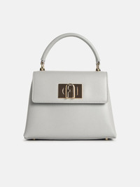 Manufacture code: WB00109 ARE000 CRH00 Retail code: WB00109 ARE000 CRH00 Made of fine hammered leather, fixed top handle, adjustable and removable shoulder strap, twist closure with tongue and the iconic 'Arco Furla' logo, interior bellows construction, one flat pocket, one zip pocket, outer flat pocket, metal feet\n21 x 16 x 8.5 cm Main: 100% calf leather Made in Bulgaria