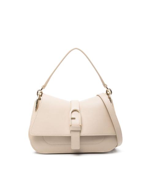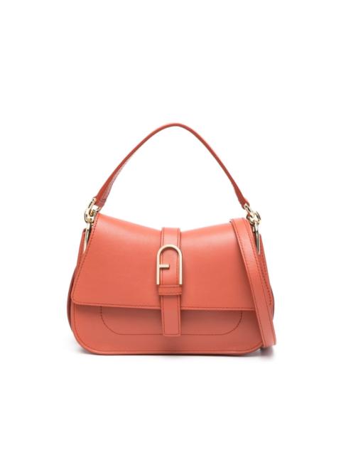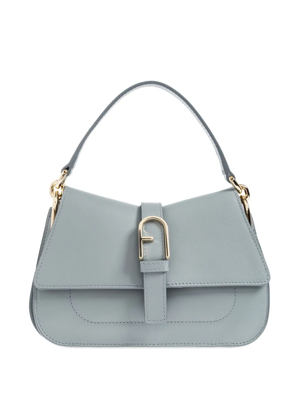 mini Flow leather tote bag Highlights - Light blue - Leather - Top handle - Adjustable and removable leather strap - Curved silhouette - Interior open pocket - Engraved logo brand - Flap and magnetic button closure Imported Composition Outer: Calf Leather 100% SIZE & FIT Measurement DEPTH 3.14 in(8 cm) HEIGHT 4.52 in(11.5 cm) WIDTH 8.26 in(21 cm)