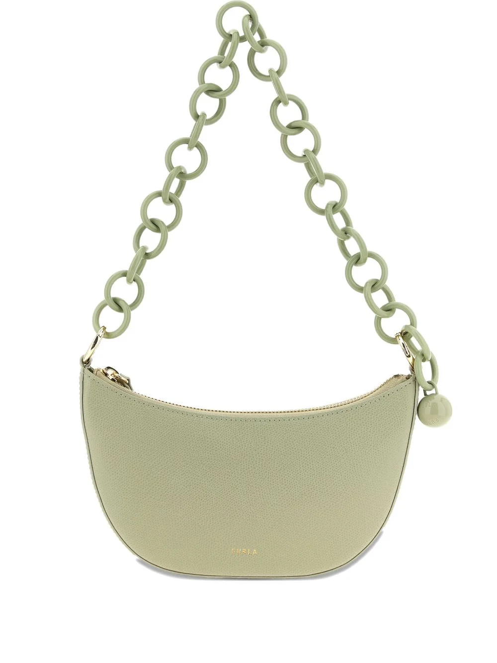 mini half-moon leather shoulder bag Highlights - Green - Half-moon shape - Gold-tone logo - Chain strap - Ball pendant detail - Zip closure Imported Composition Outer: Leather 80%, Acrylonitrile Butadiene Styrene (ABS) 20% Lining: Polyester 90%, Leather 10% SIZE & FIT Measurement DEPTH 1.57 in(4 cm) HEIGHT 4.72 in(12 cm) WIDTH 6.29 in(16 cm)