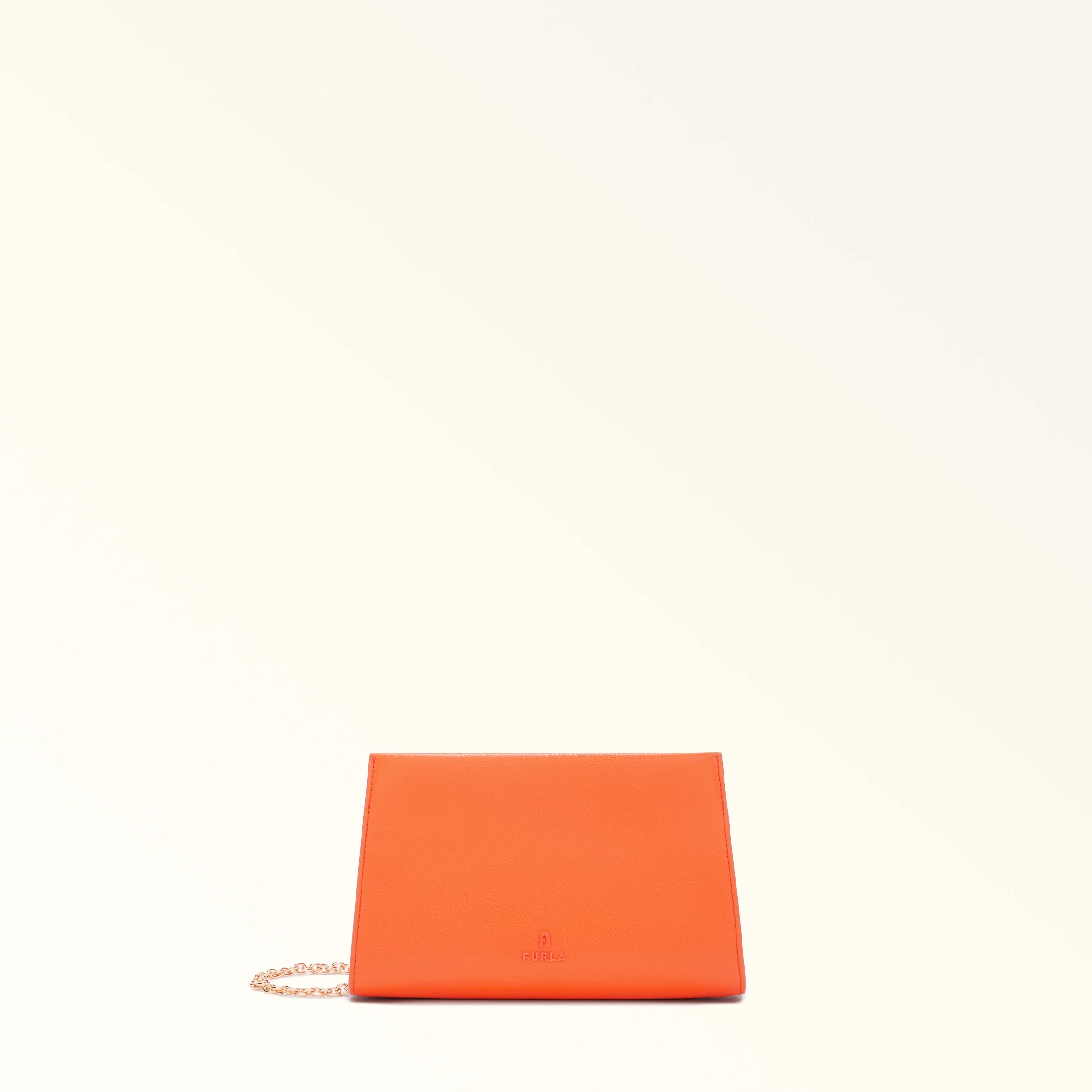 The Furla Myfurla clutch delivers elegant style in miniature form. Made from print-textured leather, it stands out for its geometric trapezoid shape. The chain shoulder strap with leather sections is removable, allowing you to wear it crossbody or carry it as a sophisticated clutch. - Open inside slip pocket - Two side hooks for handle or additional straps - Magnetic closure - Arch and Furla logo punched on the front Details Interior Details: 1 Flat Open Pocket Material: Textured Leather Strap Length Max: 42.52 in Strap Length Min: 42.52 in Product Code: WE00774ARE0001007KP000 Internal Composition: 100% Polyester External Composition: 100% Leather Plating: Gold Weight: 0.31 kg Dimensions in INCH 8,46 x 5,12 x 2,36 (w x h x d)