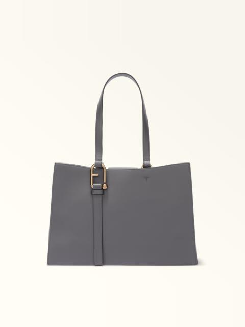 The Furla Nuvola tote bag is square, contemporary and spacious – the perfect urban companion. Made of exquisite leather with a grained finish, it features two long adjustable handles that sit comfortably in the hand or on the shoulder. Its Arcosfera hardware adds a unique detail, combining the iconic Furla Arch logo with the brand's original spherical hallmark. - Two open inner compartments - Open inside pocket - Central partition - Stud buttons at the sides to adjust the handle - Magnetic button closure - Furla logo punched on the back Interior Details 1 Zipped Divider 2 Compartments Flat Open Pockets Exterior Details Furla Punched Logo/Double Handles material Claris Lux Calf Leather Closure Magnet Closure product code WB01371_BX2045_1007_RY000 Lining 100% Polyester composition 100% Leather Plating Gold