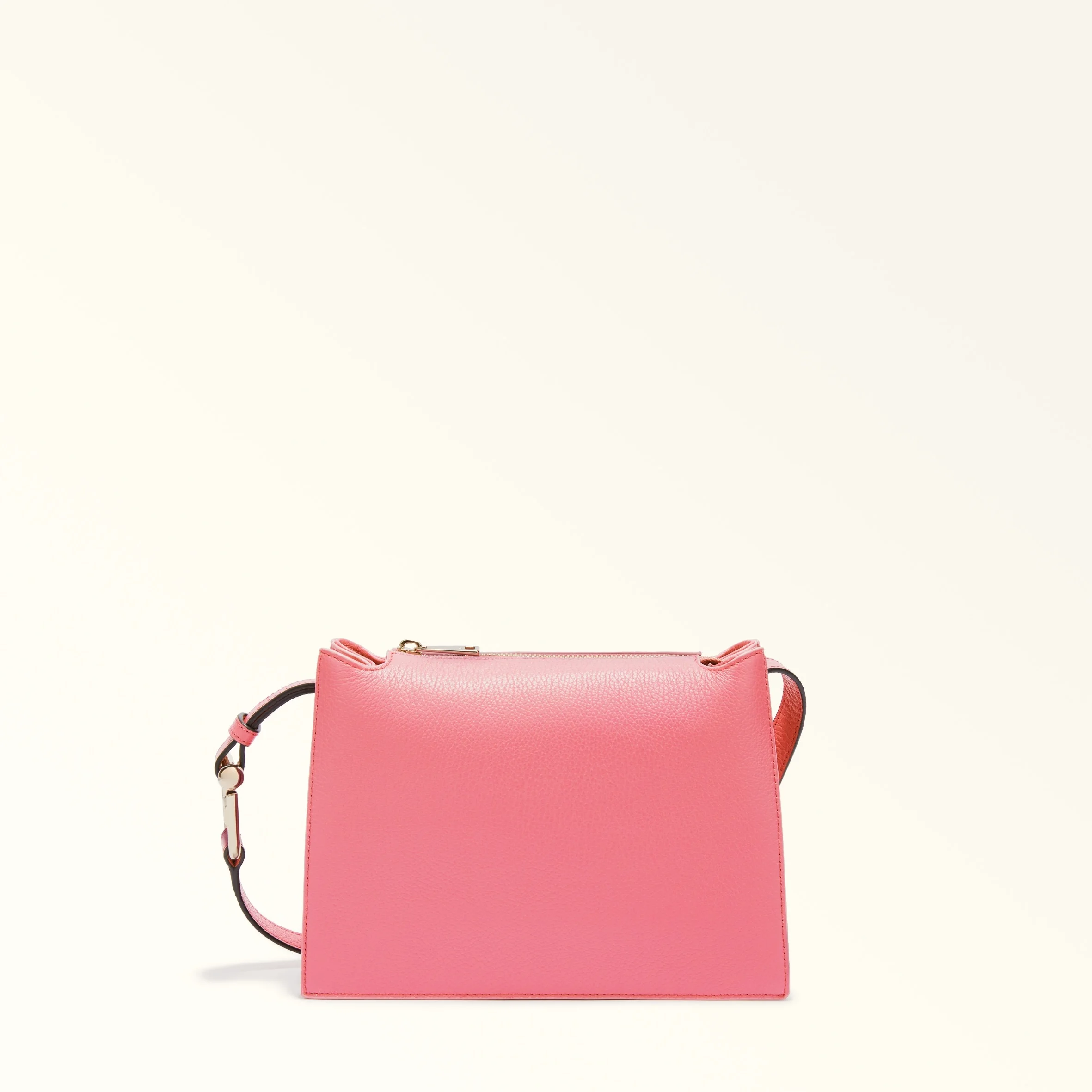 The small Furla Nuvola crossbody exudes a soft, delicate allure. Made of fine textured leather, it features a square geometric silhouette, two open inside compartments with a central divider and a top zip closure. Its detachable shoulder strap has an adjustable length, sitting comfortably on the shoulder or across the body. The Arcosfera hardware adds a unique detail to the bag, combining the iconic Furla Arch logo with the brand's original spherical hallmark. - Open inside pocket - Inside zip pocket - Stud buttons at the sides to adjust the handle - Furla logo punched on the front Details Interior Details: Divider 2 Compartments 1 Zip Pocket Flat Open Pockets Exterior Details: Furla Punched Logo Material: Grained Calf Leather Strap information: Removable/adjustable leather strap Strap Length Max: 41.73 in Strap Length Min: 39.37 in Closure: Zipper Hardware: Furla Arch Ring Cufflinks For Regolation Product Code: WB01275HSF00010074130S Internal Composition: 100% Polyester External Composition: 100% Leather Plating: Gold Dimensions in INCH 9,84 x 6,89 x 3,15 (w x h x d)