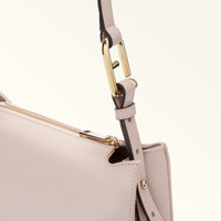 The small Furla Nuvola crossbody exudes a soft, delicate allure. Made of fine textured leather, it features a square geometric silhouette, two open inside compartments with a central divider and a top zip closure. Its detachable shoulder strap has an adjustable length, sitting comfortably on the shoulder or across the body. The Arcosfera hardware adds a unique detail to the bag, combining the iconic Furla Arch logo with the brand's original spherical hallmark. - Open inside pocket - Inside zip pocket - Stud buttons at the sides to adjust the handle - Furla logo punched on the front Details Interior Details: Divider 2 Compartments 1 Zip Pocket Flat Open Pockets Exterior Details: Furla Punched Logo Material: Grained Calf Leather Strap information: Removable/adjustable leather strap Strap Length Max: 41.73 in Strap Length Min: 39.37 in Closure: Zipper Hardware: Furla Arch Ring Cufflinks For Regolation Product Code: WB01275HSF00010072814S Internal Composition: 100% Polyester External Composition: 100% Leather Plating: Gold Dimensions in INCH 9,84 x 6,89 x 3,15 (w x h x d)