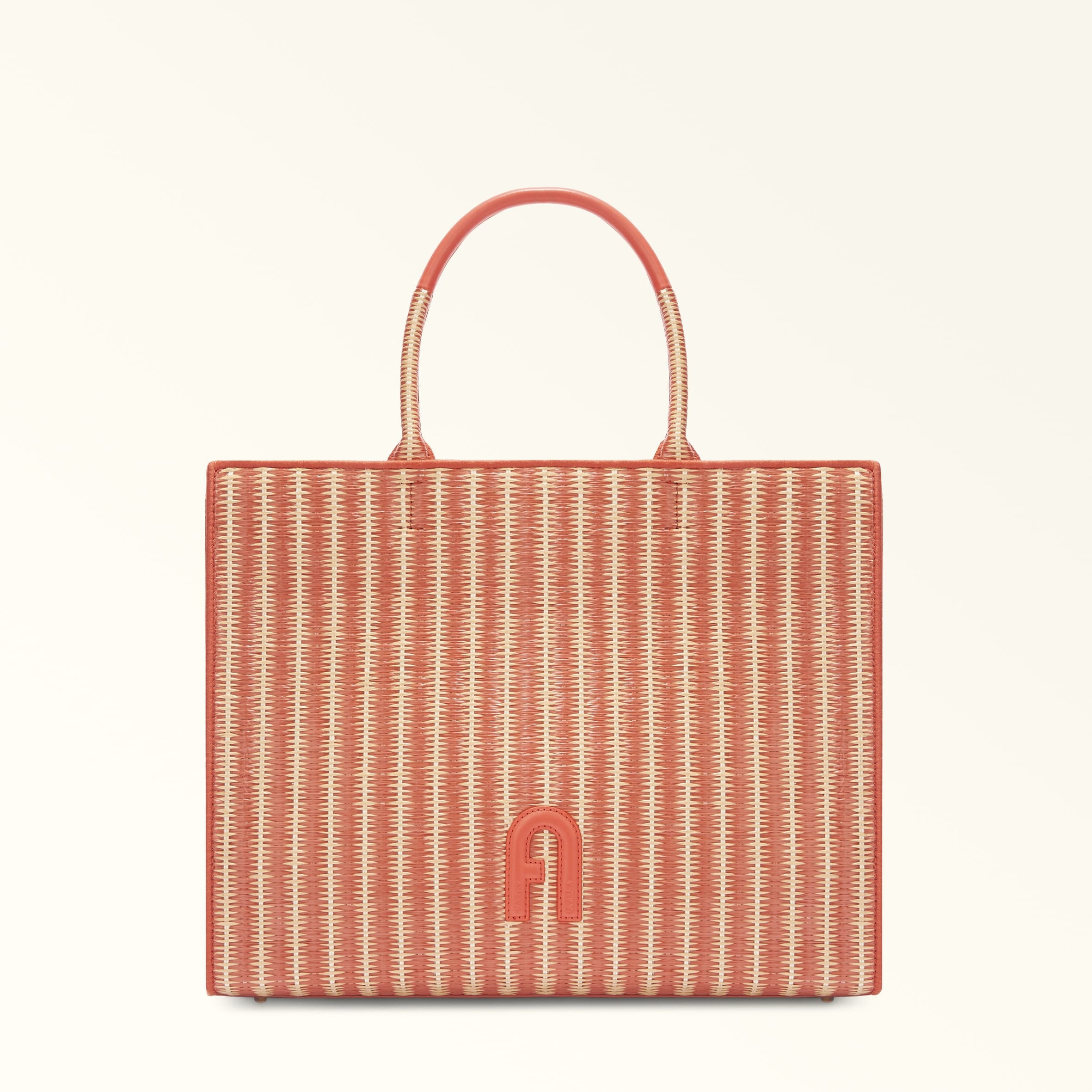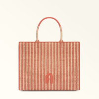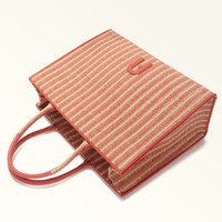 This contemporary large Furla Opportunity tote is crafted in raffia with an all-over striped pattern, with matching handles in luxurious smooth leather, so it can be carried by hand. With its sizeable dimensions and spacious interior, it is designed to carry everything you may need, for any summer occasion, leisure or travel. - Two open inside pockets - Inside zip pocket - Metal feet - Furla logo embroidered on the leather handles Interior Details 2 Flat Open Pockets/1 Zipped Pocket Exterior Details Handles Trimmed With Leather Furla Logo material Raffia Fabric With Stripes Print Closure Open Top Bag Hardware Metal Feet product code WB00255_BX0472_1007_1573S Lining 100% Polyester composition 50% Polyethylene 18% Cotton 12% Polyester 10% Polyurethane 10% Leather Plating Gold
