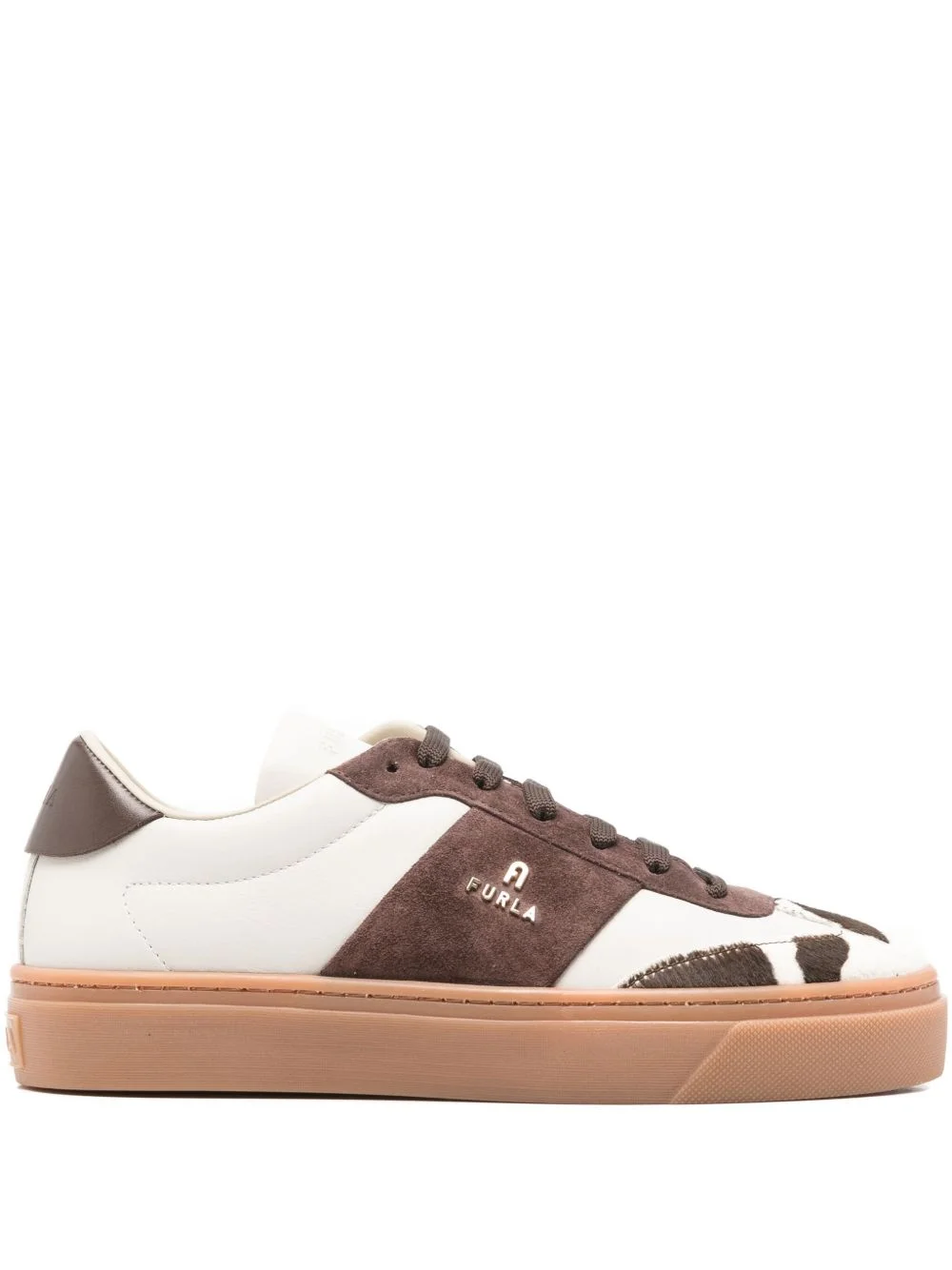 panelled sneakers Highlights - White - Logo detail - Panelled design - Round toe - Front lace-up fastening Imported Composition Lining: Fabric 100% Sole: Rubber 100% Outer: Leather 100%