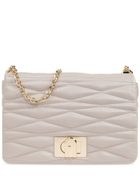 quilted shoulder bag Highlights - Beige - Chain-link shoulder strap - Foldover top - Twist-lock fastening - Main compartment Imported Composition Outer: Lamb Skin 100% Lining: Fabric 100% SIZE & FIT Measurement DEPTH 2.75 in(7 cm) HEIGHT 7.48 in(19 cm) WIDTH 9.84 in(25 cm)