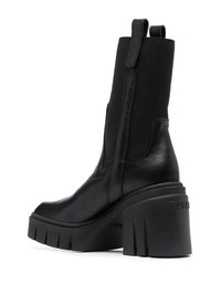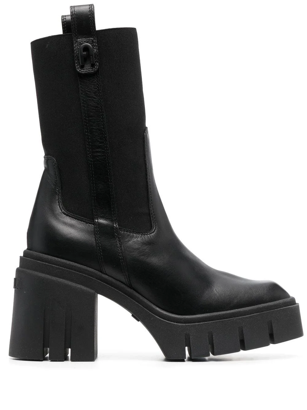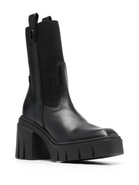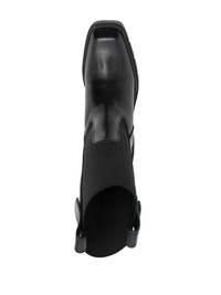 ridged 95mm block-heel boots black calf leather panelled design embossed logo to the rear square toe slip-on style 95mm ridged block heel Imported Composition Leather 100% SIZE & FIT Measurement CIRCUMFERENCE 9.84 in(25 cm) HEEL 3.74 in(9.5 cm) HEIGHT 7.48 in(19 cm) Sole height 1.37 in(3.5 cm)