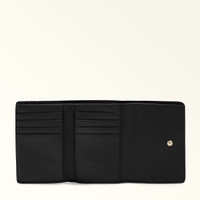 The Furla Sfera wallet is made of buttery soft leather. Flawlessly functional, it features a bi-fold design and a thoughtfully organised interior for storing your banknotes, credit cards and ID. Its flap and press-stud closure is embellished with the new galvanised spherical hardware – an iconic symbol of the Furla brand. - Zip pocket on the back - Inner compartment for banknotes - Ten inner credit card slots Exterior Details One Zipped Pocket On The Back material Soft Calf Leather product code WP00442_AX0733_1007_O6000 Lining 100% Viscose composition 100% Leather Plating Gold