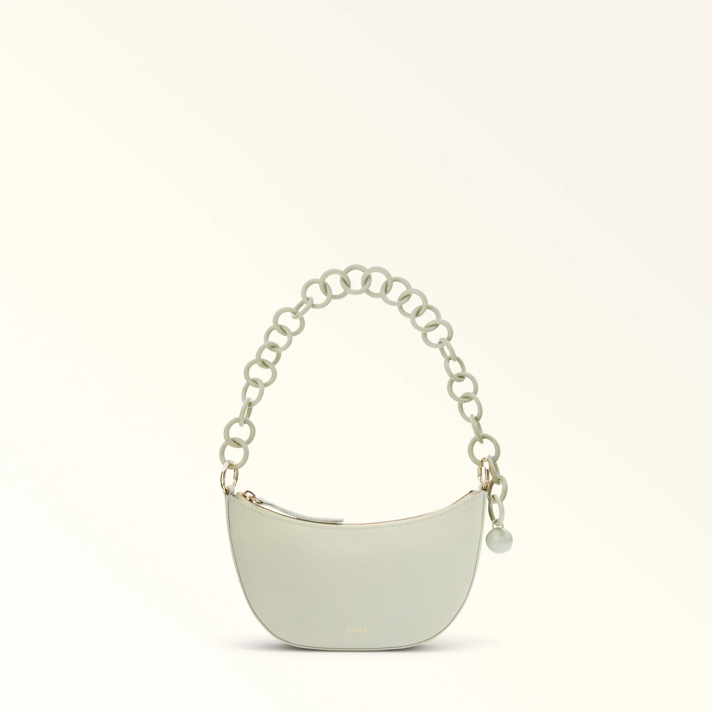 With a flawless contemporary allure, the Furla Sfera crossbody has a rounded half-moon design. Made entirely from textured leather, it features a detachable resin chain strap with an iconic Sfera pendant. Its compact saddle-inspired shape is completed by a convenient top zip closure. - Three inner card slots - Furla logo punched on the front Details Interior Details: 3 Cc Slots Exterior Details: Furla Punched Logo/Leather Zip Puller Material: Textured Leather + Resin Chain Product Code: WE00767BX398990014023S Internal Composition: 90% Polyester 10% Leather External Composition: 80% Leather 20% Abs Plating: Matching+Light Gold Weight: 0.28 kg Dimensions in INCH 6,3 x 4,72 x 1,57 (w x h x d)