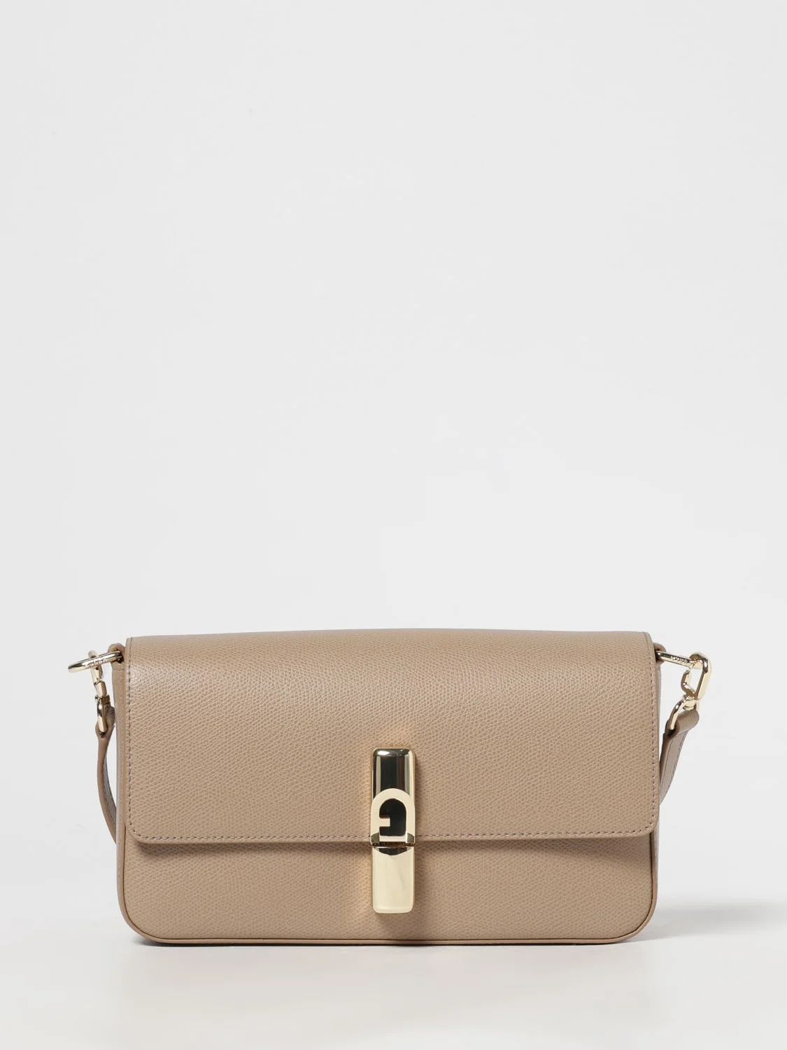 DESCRIPTION - Logo: Metallic, Monogram - Model: Shoulder - Shape: Rectangular - Shoulder strap: Adjustable and removable - Lining: With logo - Closure: With flap and magnetic buttons - Materials: Grained cowhide - Pattern: Plain-colored DETAILS AND CARE Composition 100%LEATHER SIZE AND FIT Sizes Width : 24 cm Height: 13 cm Depth: 6 cm Designer code: WB01826ARE000 1257S Giglio Code: 434418 Designer: Furla Collection: Furla Woman Category: Bags Furla